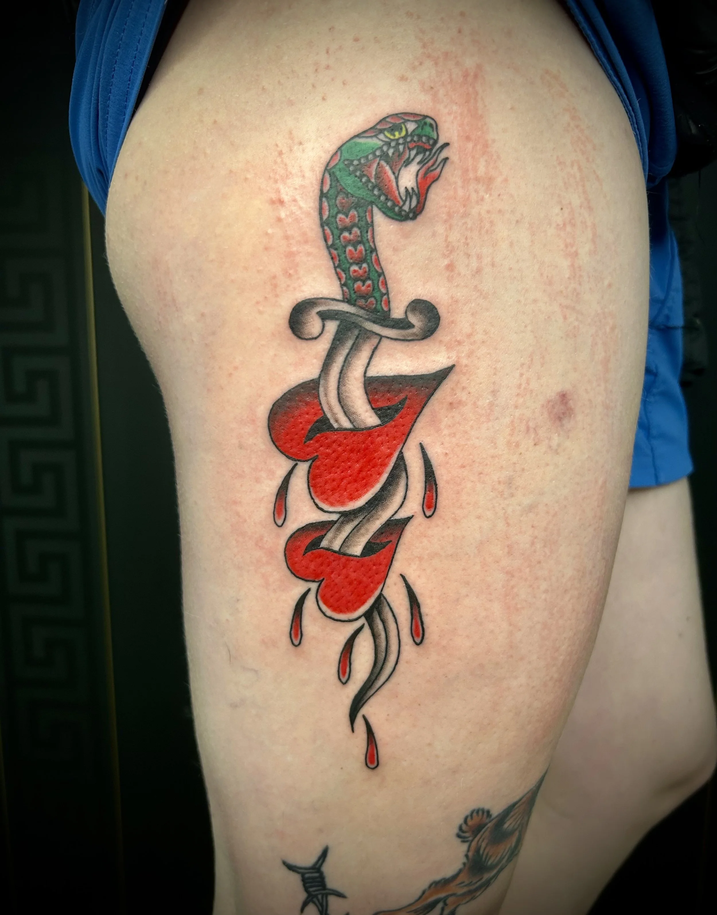 I specialize in Old School, Blackwork, and Fineline tattoos, but with a background in illustration I’m able to take on a wide range of styles.